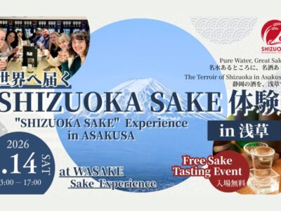 ~1杯無料の体験から始まる、地域の個性豊かな味わいと特産素材のペアリング~ 静岡県は、2026年2月14日(土)、東京・浅草の体験型日本酒施設「WASAKE Sake Experience」にて、静岡県産日本酒(GI静岡)の魅力を世界に発信するポップアップイベント「世界へ届く SHIZUOKA SAKE 体験 in 浅草 ~ “ SHIZUOKA SAKE ” Experience in ASAKUSA ~」を開催いたします。 本イベントは、県内各地の清冽な水資源と独自の静岡酵母が生み出す「GI静岡」認定 ...