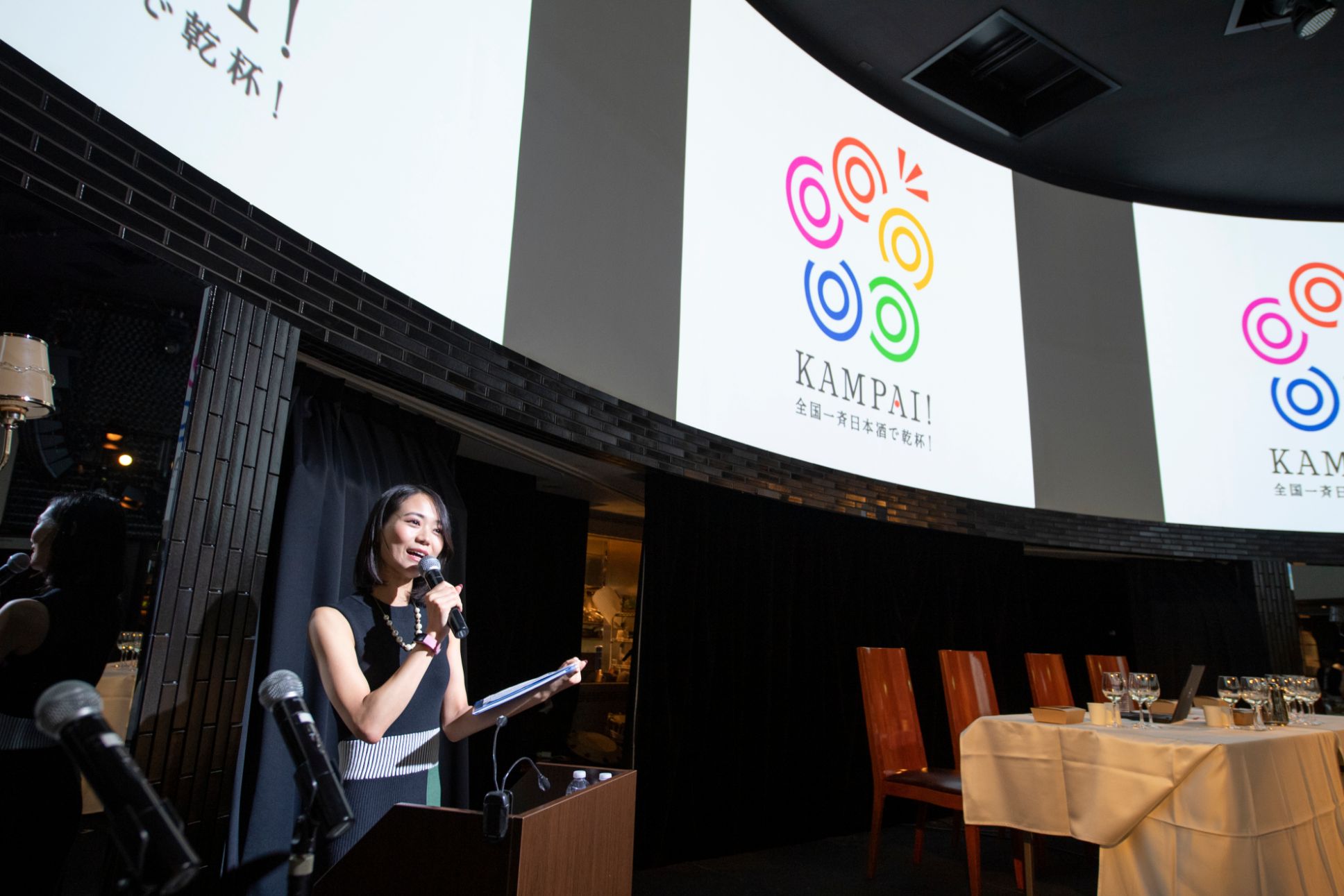 10月1日(火)のメイン会場として、恵比寿ガーデンプレイスに隣接するアクトスクエアで開催された「全国一斉 日本酒で乾杯!in 恵比寿」では、一斉乾杯の模様はYouTube LIVE から動画配信されて、各地からもイベント会場の雰囲気を楽しむことができました。プログラムは二部構成で、女優で唎酒師の緑川 静香さんのMCではじまりました。