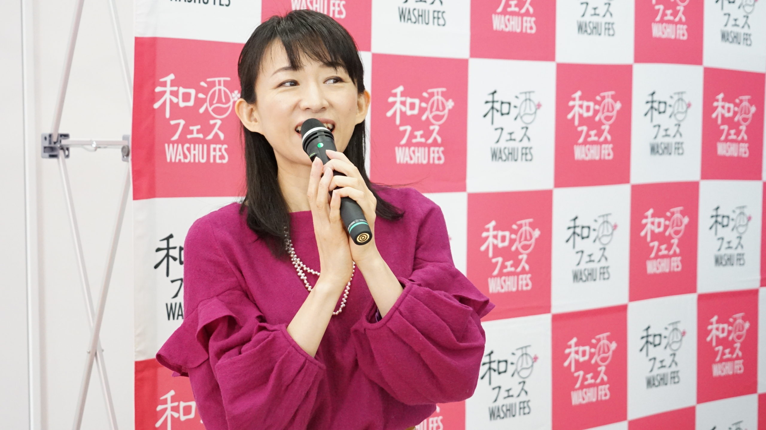 ステージでは、和酒コーディネーター・酒サムライのあおい有紀さん、日本酒スタイリスト・タレントの島田律子さんがMCを務められ、蔵元とのトークやミス酒 松井詩さんと共に日本酒と健康・美容セミナーを行われました。日本酒プロデューサーである上杉孝久さんは、3部とも終始安定したトークでご来場者を楽しませ、オープニングやコーナーの合間に流れる雅勝さんの三味線が会場を盛り上げました。