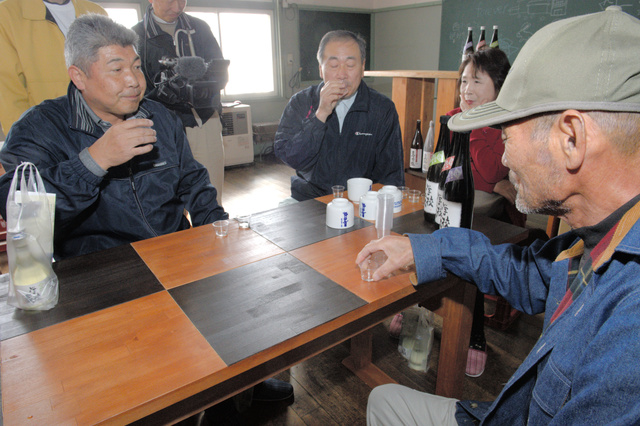 3日、酒蔵となった佐渡市の旧西三川小学校に住民を集め、設備のお披露目会と酒の試飲会があった。卒業生で農家の男性(63)は酒をちびりと飲んでは「うまい」とうなり、「酒蔵として残すのは良い取り組み。今後も人が集まるように願っている」と話した。