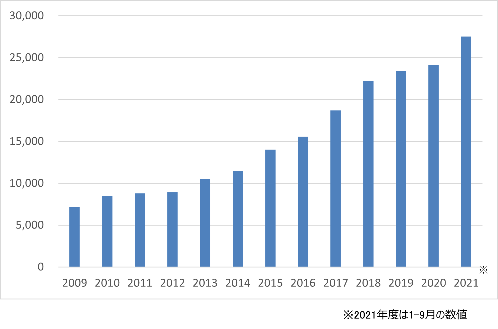 日本酒造組合中央会(以下:中央会)は、2021年度(1~9月)の日本酒輸出総額が、昨年を超え、12年連続で最高記録を達成したことを発表いたします。