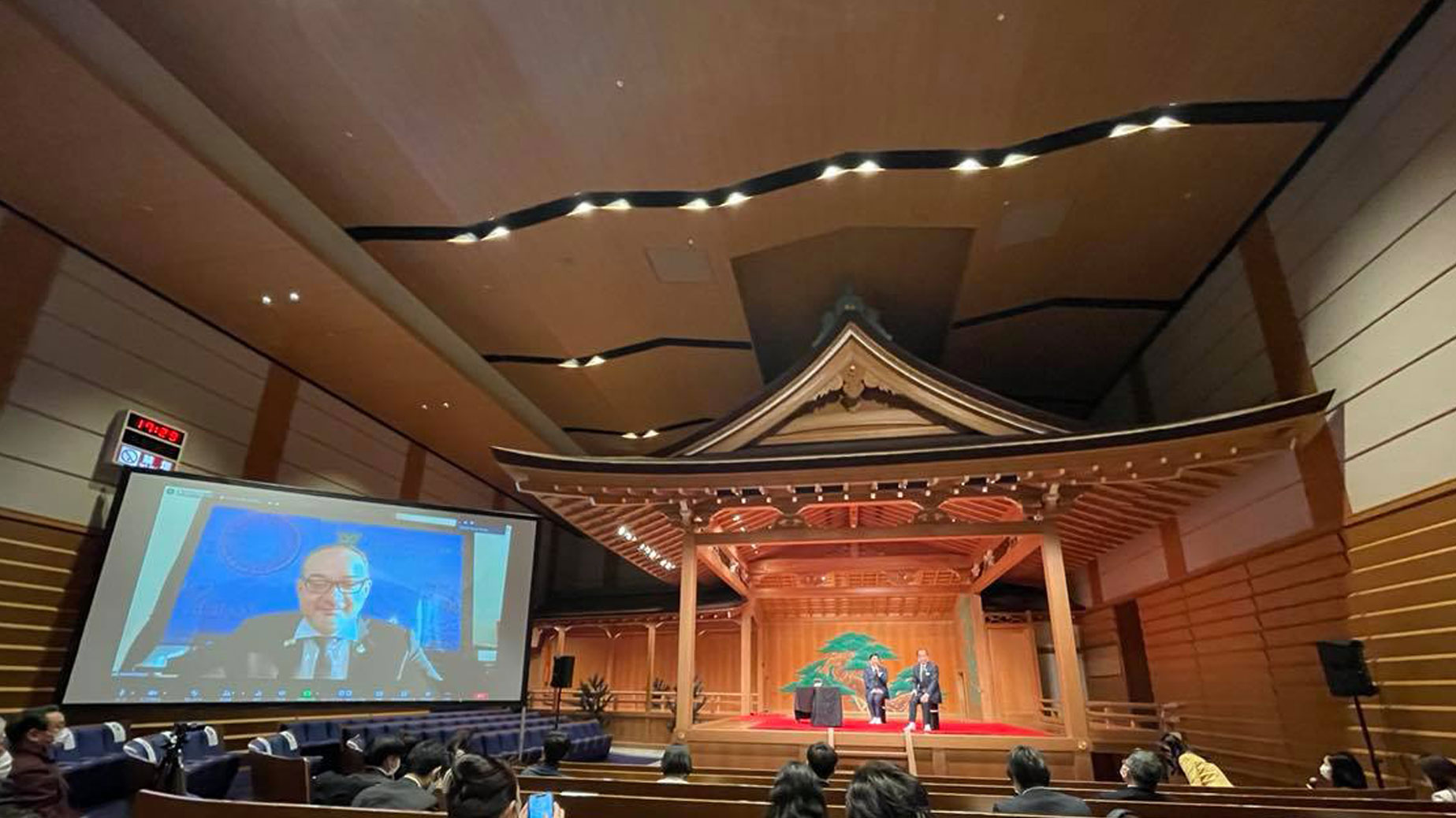 今年は「awa酒大使(Awasake Ambassador)」も叙任することになり、その叙任式も同時開催。さらにソムリエ・田崎真也氏や世界的に有名なトップソムリエも迎えた「awa酒パネルディスカッション」も海外ライブ中継にて行われ、普段、能楽鑑賞以外では一般の人はなかなか立ち入ることのできない広々とした伝統文化の殿堂「二十五世観世左近記念 観世能楽堂(東京・銀座)」をリアル会場とし、オンラインではzoomを使った登壇者の参加やYoutubeでの同時配信が行われました。