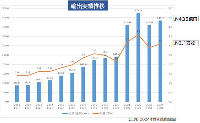 2024年度日本酒輸出実績は金額・数量共に前年度越え