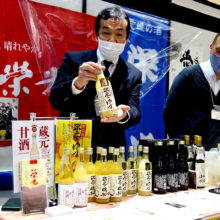 日本酒造組合中央会、栄光酒造、世界一統、竹内酒造、千代の園、福井酒造、光武酒造のブースへ伺いました。