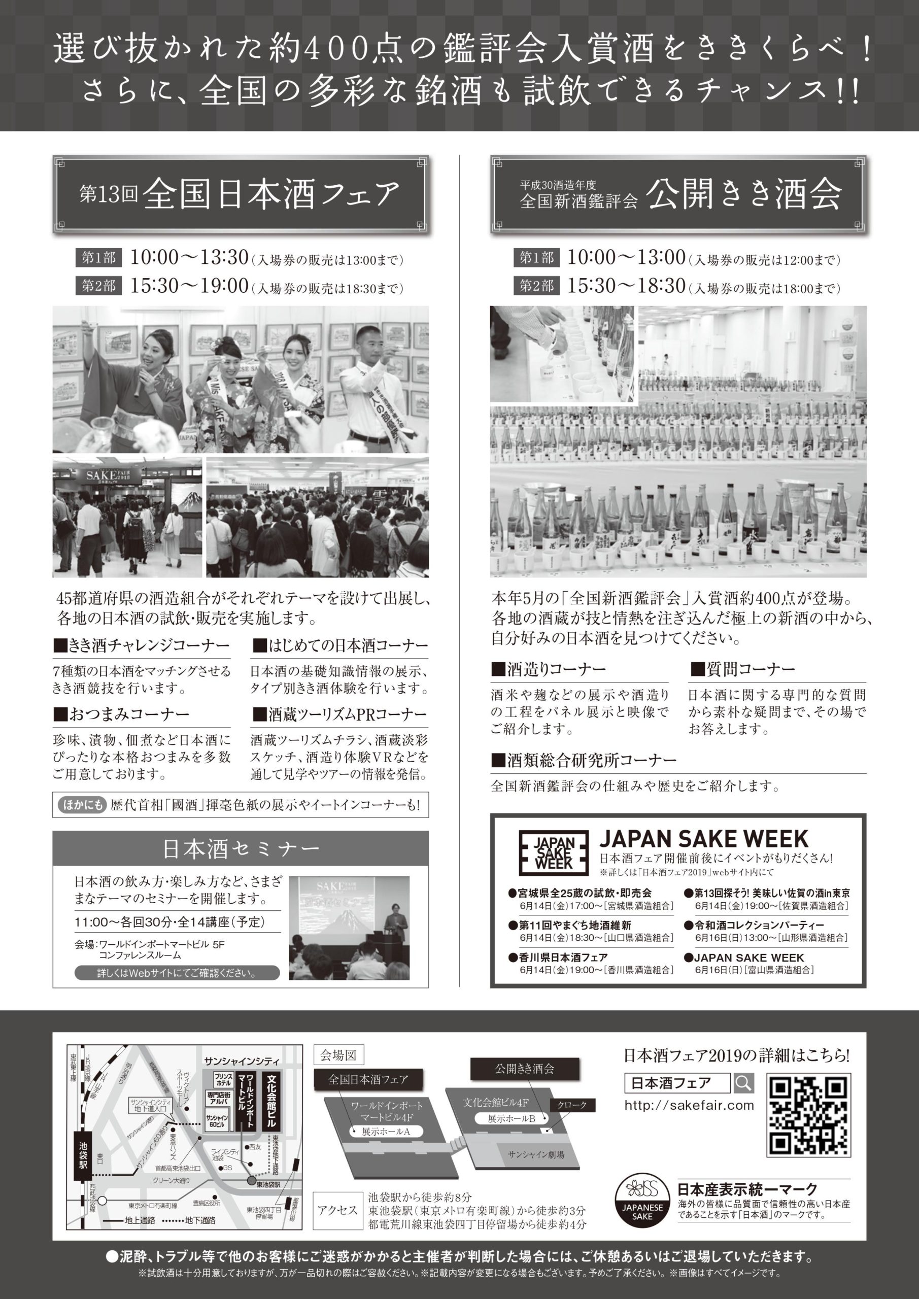 ※ 平成30造年度全国新酒鑑評会 公開きき酒会は2019年6月15日に東京・池袋サンシャインシティにて開催予定です。416点の入賞酒をきき酒できます。