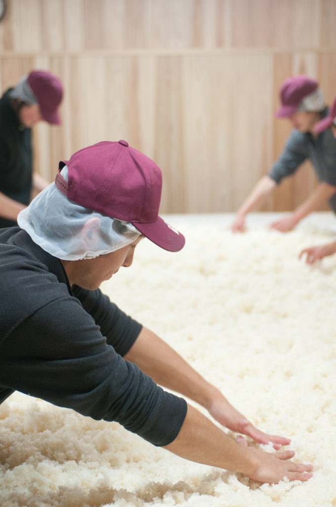 年間を通して酒造りを行い、鮮度の高い商品が特長です。酸化を抑制するためにタンクではなく瓶で貯蔵し、殺菌のための火入れもほとんどの商品が一回だけです。伝統的な製法と道具で手造りし、モダンな味わいを目指していますので、カジュアル大吟醸・スパークリング日本酒・ワイングラスで飲む日本酒・吟醸の燗酒などの現代の食生活に合った日本酒を、年間を通して醸造することより最もおいしい時期に提供します。