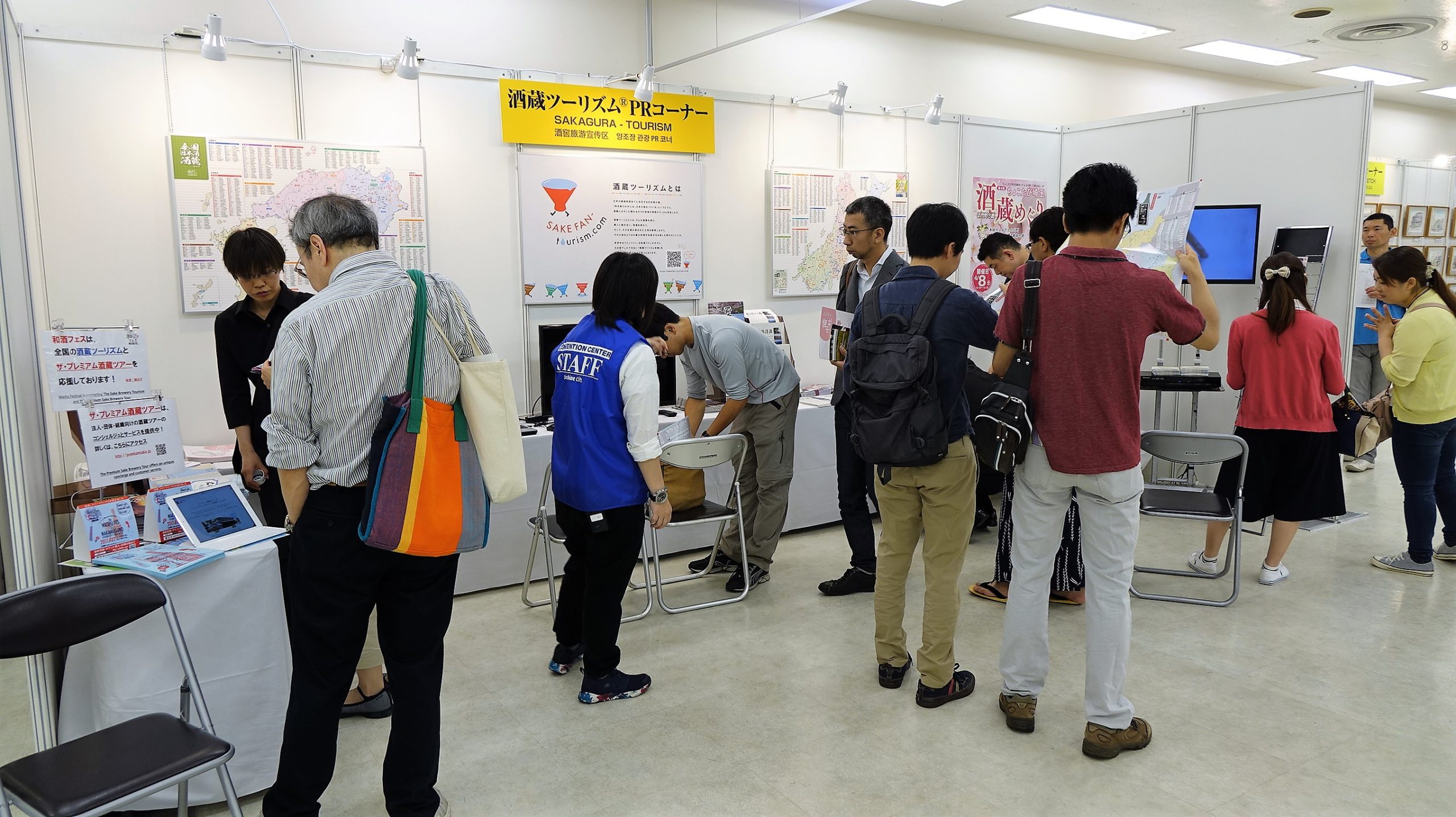 日本酒フェアの会場では、全国45蔵の酒造組合・連合会、awa酒協会、長期熟成酒研究会、酒蔵ツーリズム推進協議会、酒蔵淡彩スケッチ、酒肴の組合などが出展しました。