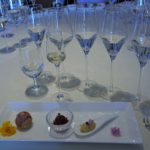 参加者は発売前の「EXPRESSION 2019」と、その母体となった25年熟成大吟醸古酒、リッツ・カールトンのフードととも味わいました。飲み比べることで、新たな息吹を吹き込まれたことを実感し、エレガントな食事とのペアリングは、軽やかなでリンゴのようなジューシー感と、シャープで洗練された後味で料理との相性が抜群でした。