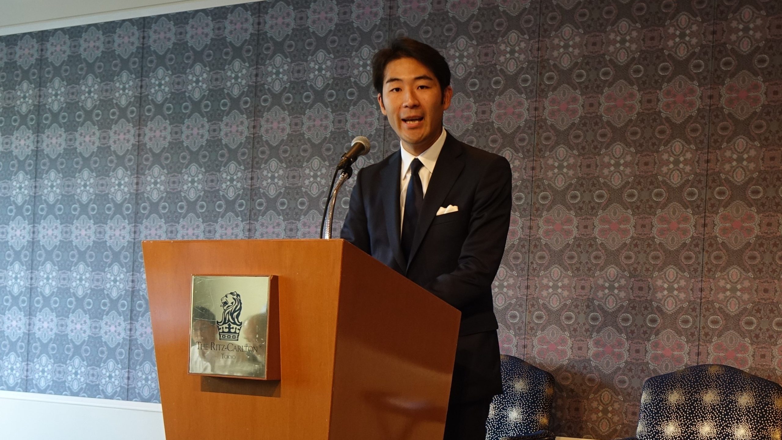 新発売に先立ち、9月10日にザ・リッツ・カールトン東京パークビュールームで開催された記者発表には、酒販店、流通関係者、オピニオンリーダー、インフルエンサーが集まりました。山梨銘醸の北原対馬社長からのこの一年の活動報告と、杜氏の北原亮庫専務から、七賢スパークリング日本酒「EXPRESSION(エクスプレッション) 2019」の説明、想いを、司会のあおい有紀さんとのトークセッション形式で披露しました。