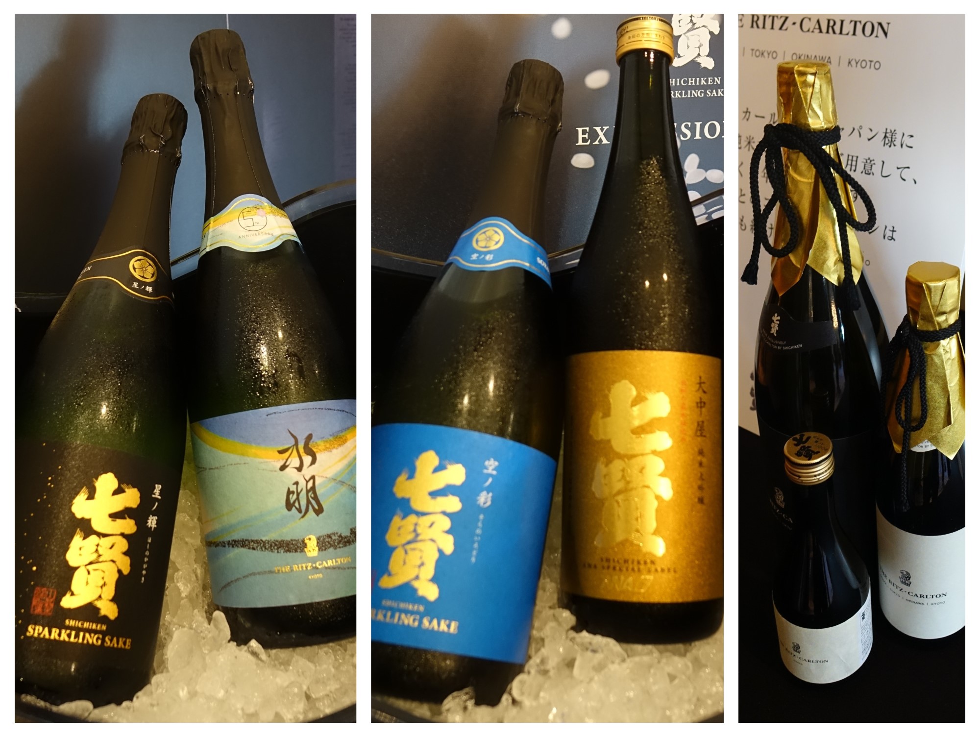 他にも、常に前人未到のスパークリング日本酒の領域を切り拓く七賢のスパークリングのラインナップ、新酒で仕込む「空ノ彩(そらのいろどり)」、Kura Masterスパークリング Standard部門 プラチナ賞を受賞した「星ノ輝(ほしのかがやき)」、地元・サントリー白州蒸留所のウィスキー樽で貯蔵した「水明(すいめい)」と言う、これまでの足取り辿る様に味わい、さらにANAファーストクラスでも提供されて、以前の屋号を冠する純米大吟醸「大中屋」まで、煌びやかなラインナップをテイスティングしました。