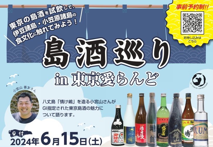 公益財団法人東京都島しょ振興公社は、このたび焼酎では18年ぶりにGI(地理的表示)指定を受けた東京島酒を広く周知することを目的に、島の味覚と共に東京島酒を味わうイベント「島酒巡りin東京愛らんど」を伊豆諸島・小笠原諸島アンテナショップ東京愛らんど(東京都港区)にて開催します。