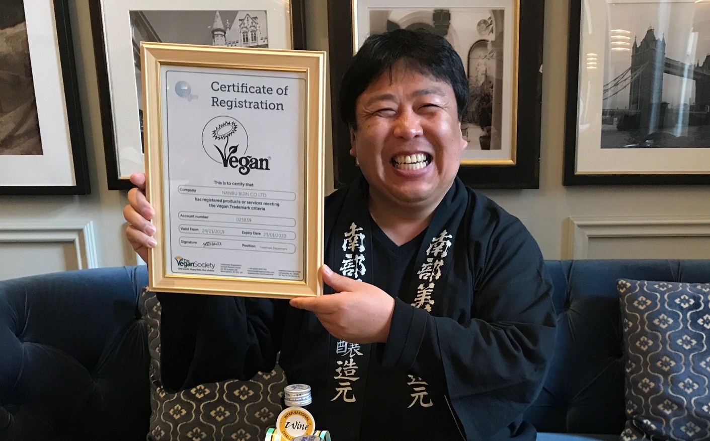 株式会社南部美人(本社:岩手県二戸市、代表取締役社長:久慈浩介)は、1月25日(金)、2013年のコーシャ認証取得に続き、ヴィーガン認証を国内外の両方で無事に取得しました(国内:NPO法人ベジプロジェクトジャパン、海外:The Vegan Society)。同社の海外輸出酒のすべてがヴィーガン認証となり、国内初&世界初のヴィーガン認証の日本酒を国内外に向けて発信・提供できるようになりました。