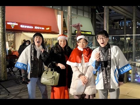 汐留の日本テレビ、日テレタワーの大屋根広場で開催されたマルシェ(市場)スタイルの「和酒フェス」が初回の余韻もさめやらぬ12月19日(土)に第二回が晴天に恵まれて開催された。今回のテーマは「Merry Xmas & Happy New Yearを日本酒で乾杯!」。全国から28酒蔵が出店。今季しぼりたての新酒、クリスマス、年末年始と特別なイベントが続くこの季節に合わせた厳選された銘柄100種類以上が並び来場者は思う存分に味比べ!気に入ったお酒をその場でどんどん購入、各蔵のブースは年の瀬の市場さながらの活気に満ち溢れた。会場内では酒蔵が熱燗向けに推薦する熱燗の試飲コーナーや、銀座のバーテンダーさんが造ってくれる「温かい日本酒カクテル」が登場した。前回に続き、日本酒の伝導師の称号「酒サムライ」のアナウンサーあおい有紀さん、日本酒スタイリストでタレントの島田律子さんがトークショーで登場。女性龍神太鼓の演奏や、利き酒師でお笑い漫才コンビの「にほんしゅ」さんが会場を笑いで盛り上げ、とにかく賑やかに開催された第二回をレポートします。