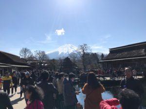 河口湖畔に来ている人の8割が外国人でした。寒い時期に日本人は河口湖へ行かないそうです。