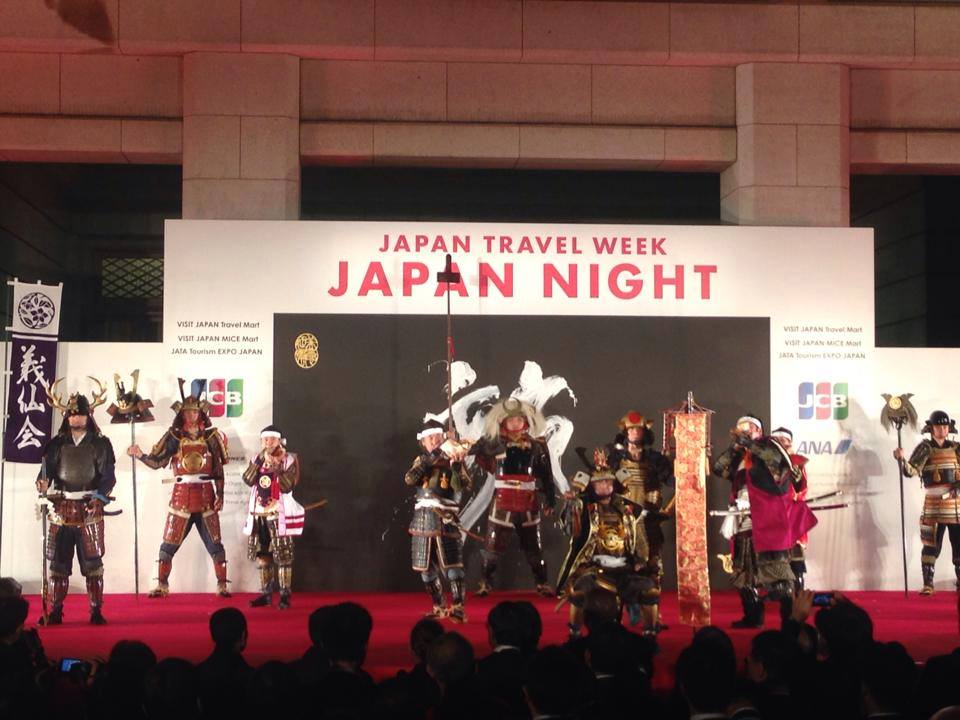 「旅」という文字をバックに日本文化でもある鑑割りで、ジャパンナイトがスタートし、