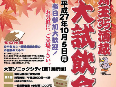 HOME > 試飲会 試飲会 【イベント情報】第12回 埼玉35酒蔵 大試飲会 2015年10月5日(月)に、大宮ソニックシティ〔第1展示場〕にて第12回 埼玉35酒蔵 大試飲会が開催されます。 当日参加大歓迎!お気軽にご来場ください。 出展酒蔵一覧 北部(熊谷税務署管轄) 秩父 ... 2015/9/15 「世界をうならせる日本酒が勢揃い」日本で唯一のIWC公認イベ... 2014年10月25日(土) 場所: 東京・日本橋『YUITO』 日本で唯一のIWC公認イベントプレミアム日本酒試飲会の取材映像です。 全国よりIWC(インターナショナル•ワイン•チャレンジ)を受賞し ... 2014/10/30